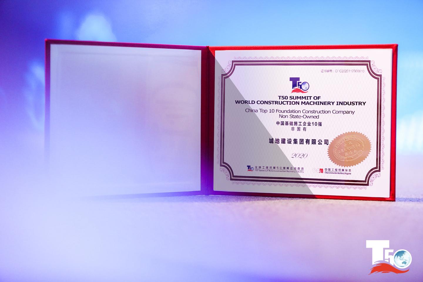 T50峰會(huì) | 城地建設(shè)集團(tuán)獲中國(guó)基礎(chǔ)施工企業(yè)十強(qiáng)榮譽(yù)