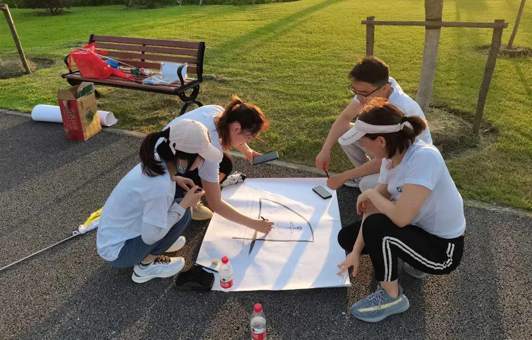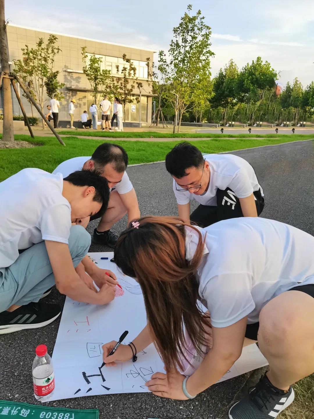 跑步運動后,破冰開始。大家分小組進行任務(wù)分配,在挑戰(zhàn)中感受團隊合作的快樂。