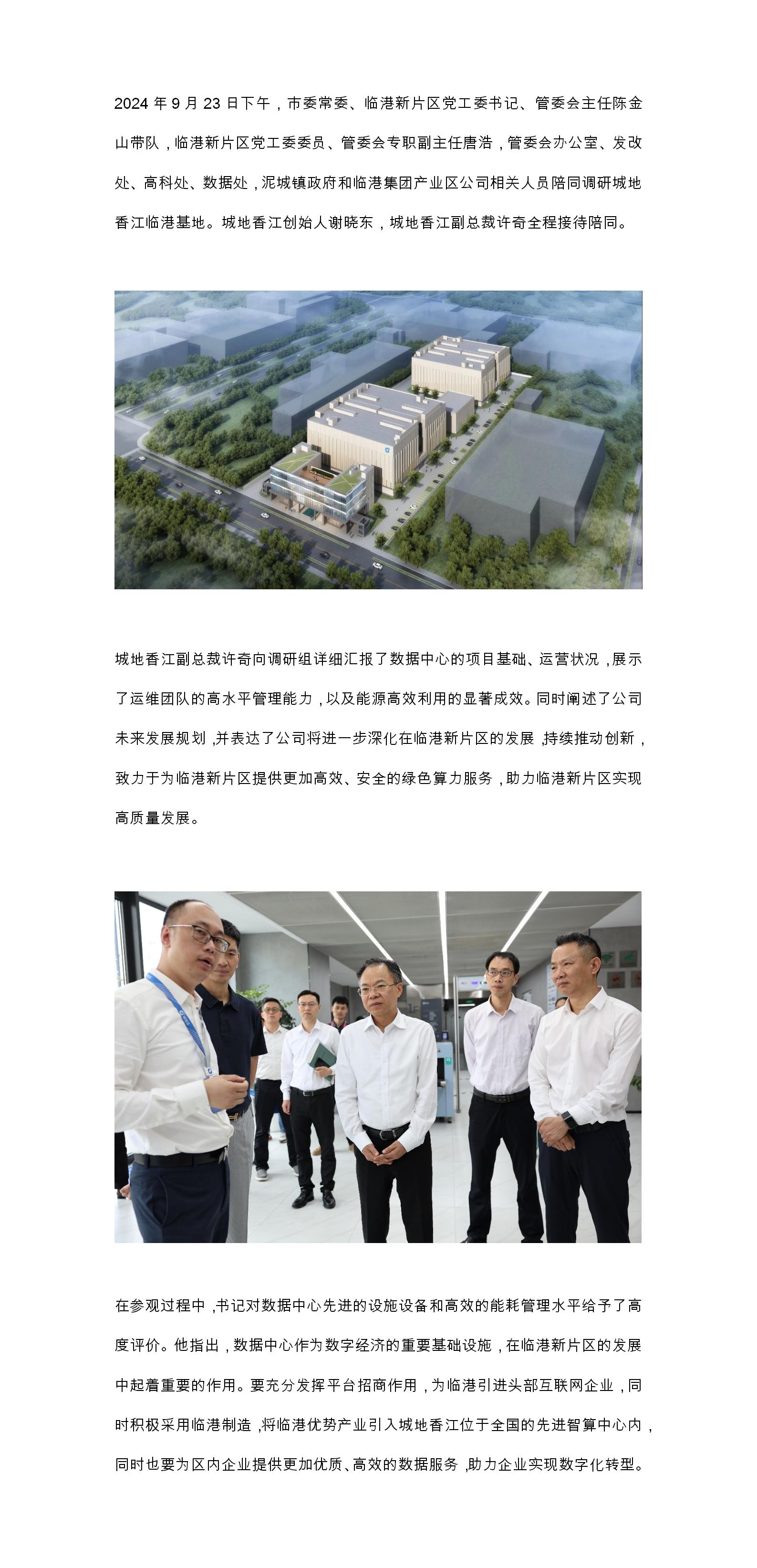 市委常委陳金山一行調(diào)研城地香江臨港基地